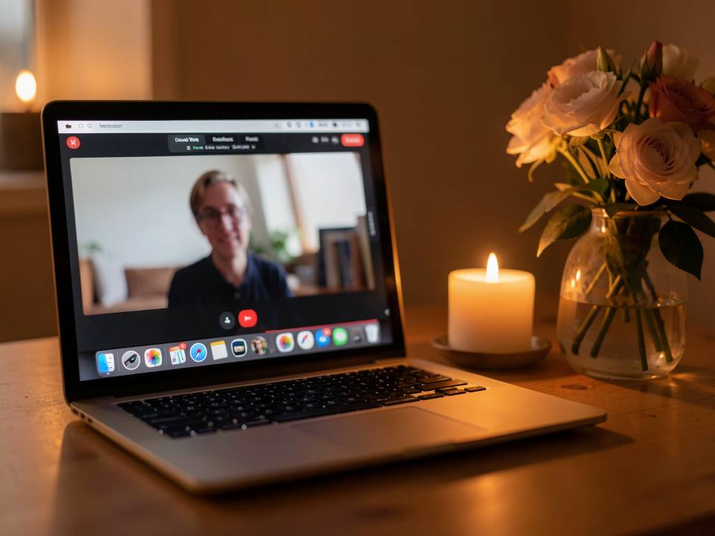- A blended ceremony, with a small group together in person and others joining on screen.