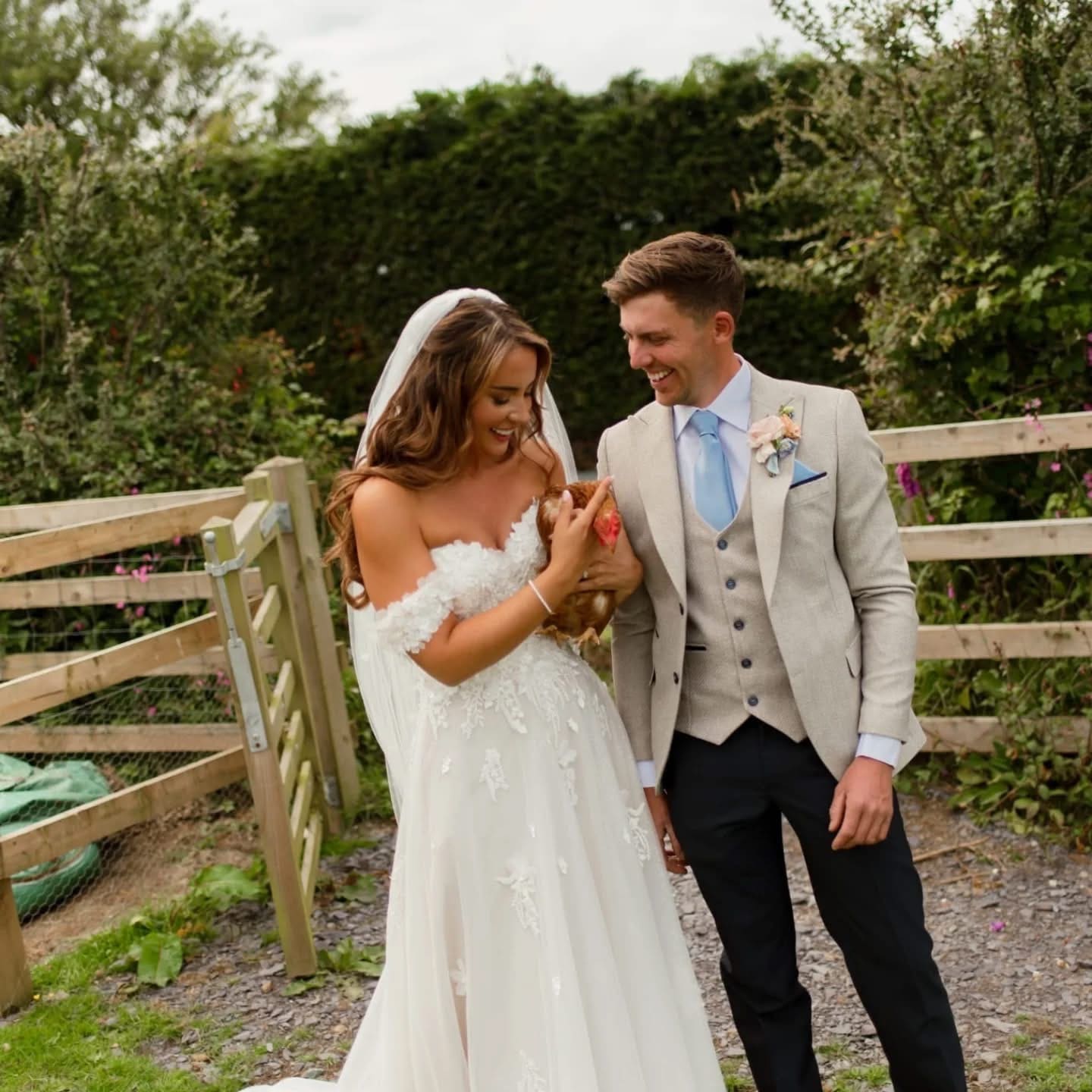Ffion and Tom’s dream of a heartfelt garden wedding surrounded by their beloved pets came true thanks to a bespoke celebrant-led ceremony by Jane. With personal touches like a handfasting ritual and their Shetland pony as ring bearer, their special day was as unique and meaningful as their love story.