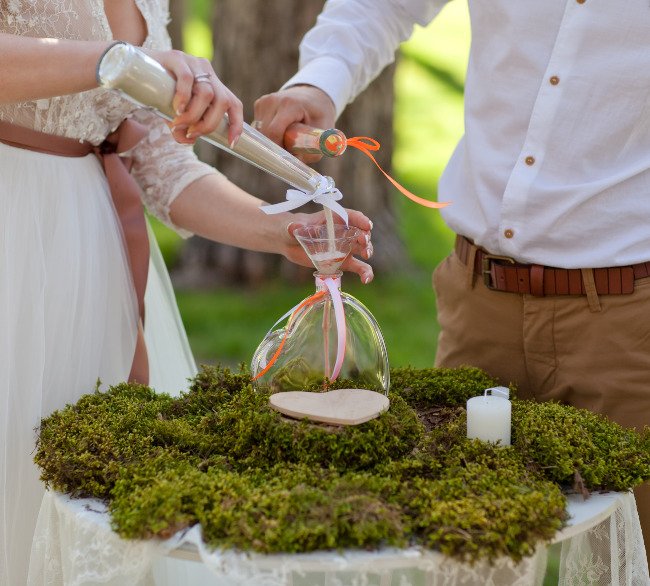 This ritual involves a symbolic blending of different coloured sands into a single vessel.